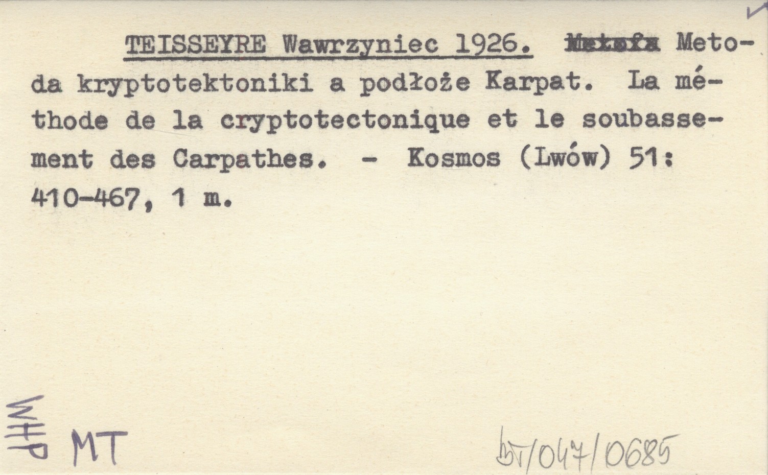 TEISSEYRE Wawrzyniec 1926 Metoda kryptotektoniki a podłoże Karpat. La méthode de la cryptotectonique et le soubassement des Carpathes.