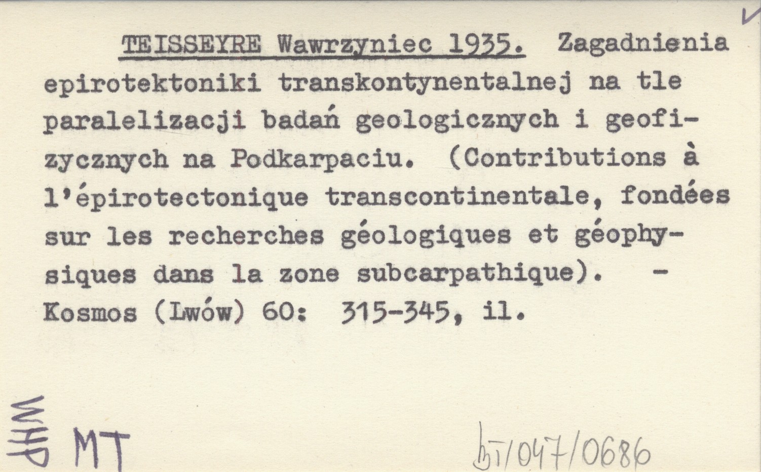 TEISSEYRE Wawrzyniec 1935 Zagadnienia epirotektoniki transkontynentalnej na tle paralelizacji badań geologicznych i geofizycznych na Podkarpaciu. (Contributions á l'épitrotectonique transcontinentale, fondées sur les recherches géologiques et géophysiques dans la zone subcarpathique).