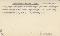 TEISSEYRE Roman 1956 Informacje o krajowym programie badawczym podczas Miêdzynarodowego Roku Geofizycznego.