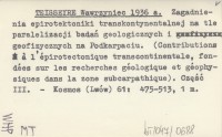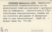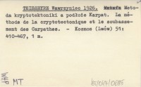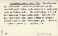 TEISSEYRE Wawrzyniec 1936 a Zagadnienia epirotektoniki transkontynentalnej na tle paralelizacji badañ geologicznych i geofizycznych na Podkarpaciu. (Contributions á l'épitrotectonique transcontinentale, fondées sur les recherches géologiques et géophysiques dans la zone subcarpathique). Czê¶æ III.