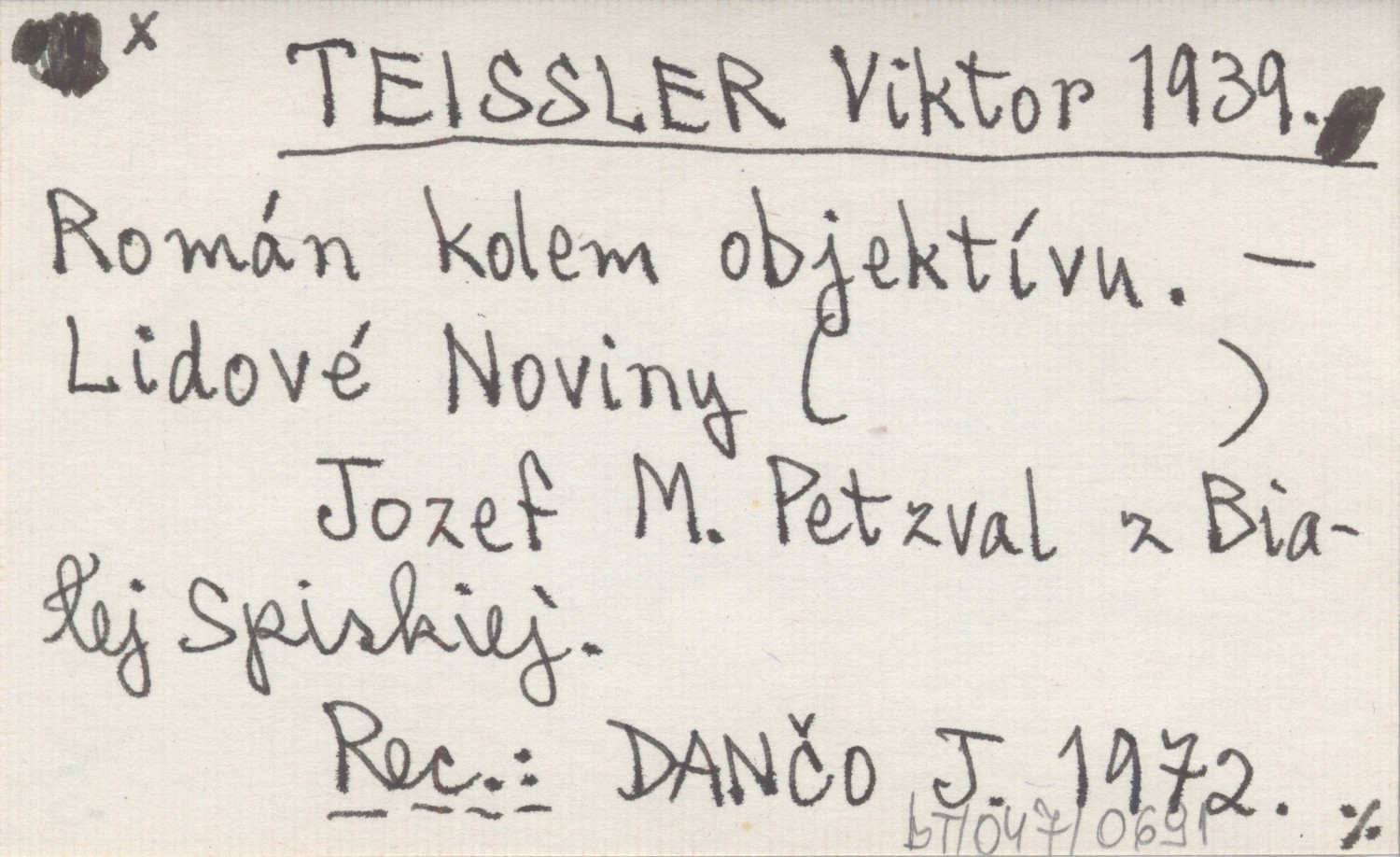 Lidové Noviny, Jozef M. Petzval z Białej Spiskiej. REC: DANČO J. 1972