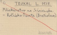 TEJKAL L. 1937 Mliekárstvo na Slovensku.