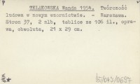 TELAKOWSKA Wanda 1954 Twórczo¶ć ludowa w nowym wzornictwie.