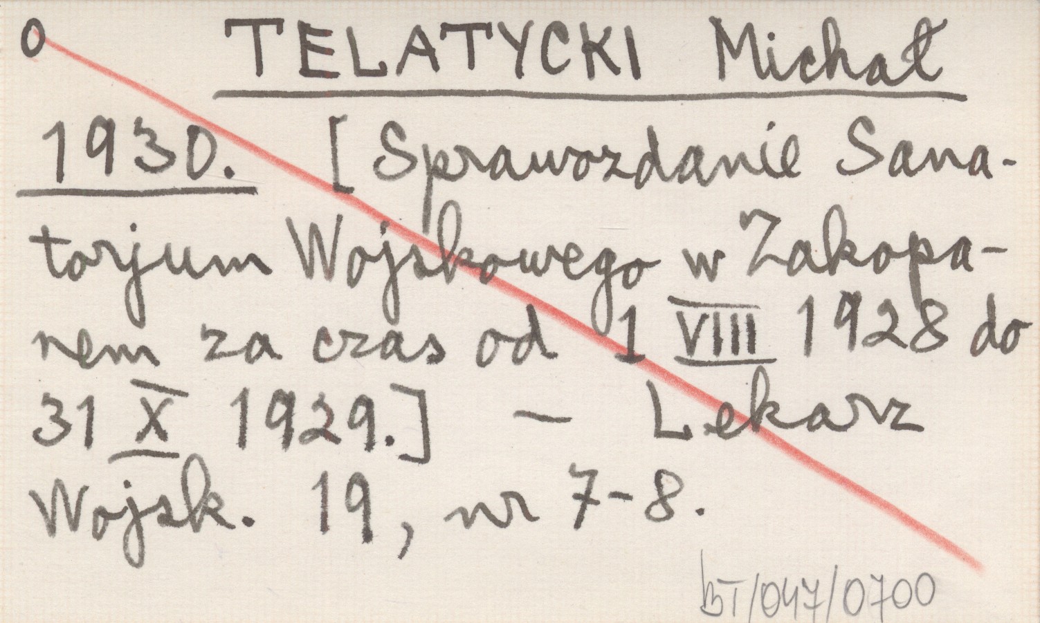 TELATYCKI Michał 1930 [Sprawozdanie Sanatorjum Wojskowego w Zakopanem za czas od 1 VIII 1928 do 31 X 1929.]