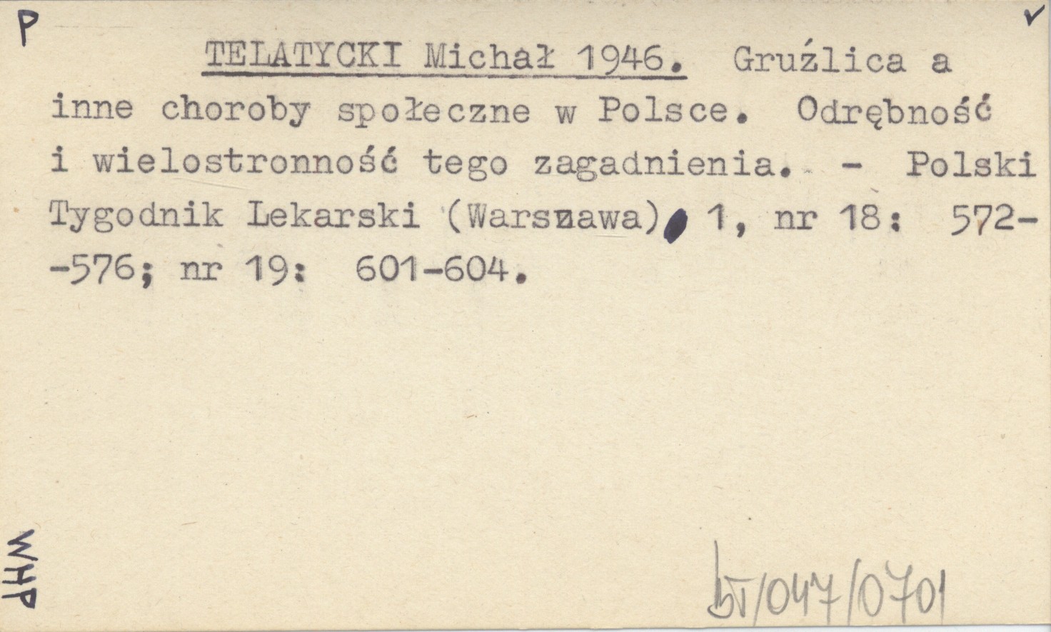 Polski Tygodnik Lekarski (Warszawa) , 1, nr 18: 572-576 ; nr 19: 601-604.