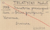 TELATYCKI Michał 1947 Sanatoria przeciwgruźlicze w Polsce powojennej.