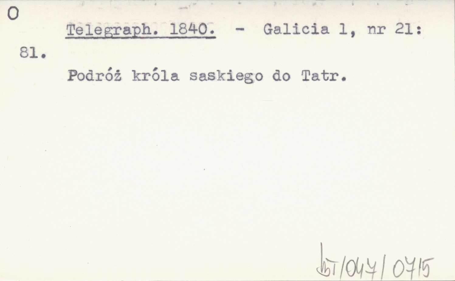 Galicia, 1, nr 21: 81. Podróż króla saskiego do Tatr.