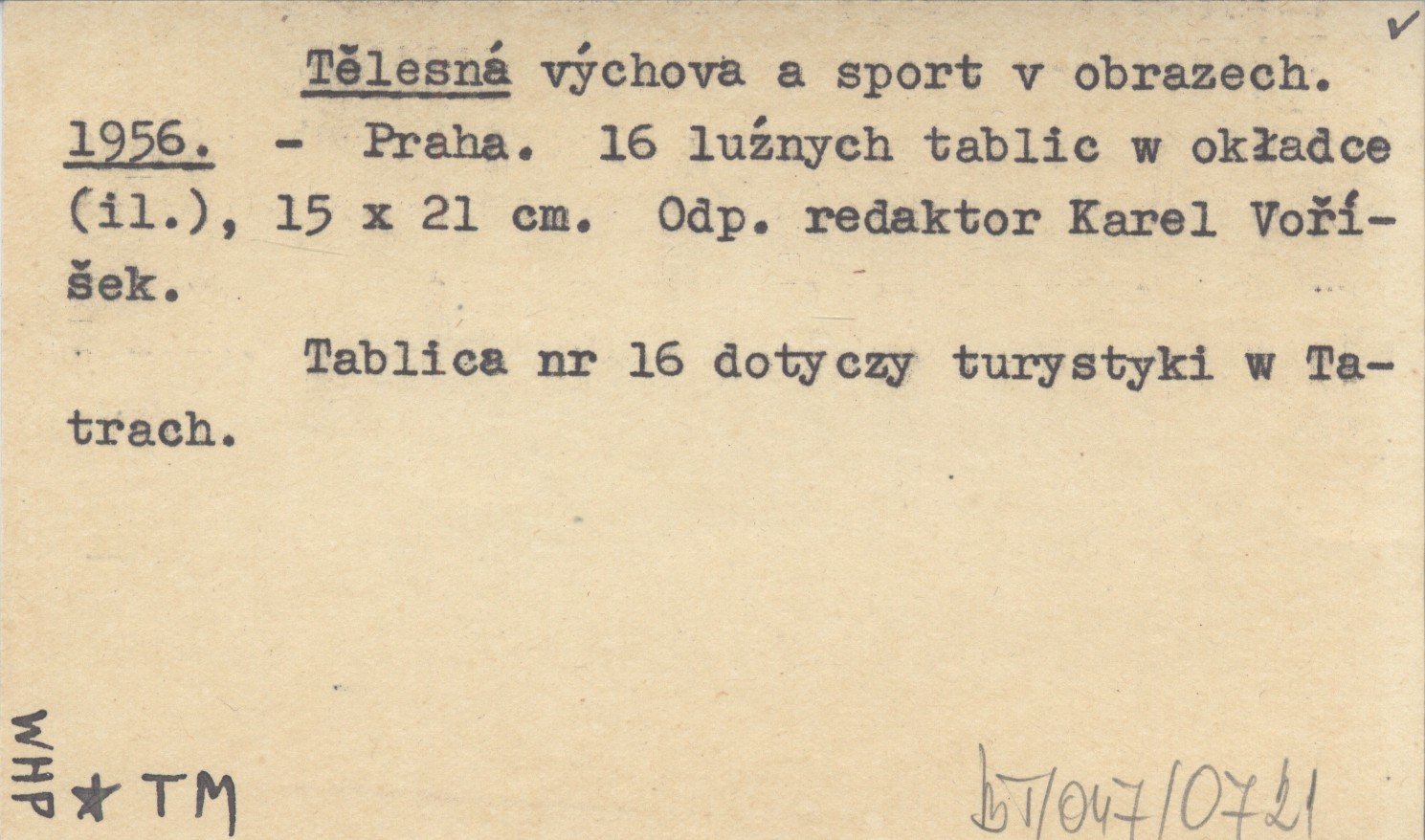 RED: VOŘÍŠEK, Karel. ; Tělesná výchova a sport v obrazech. 1956