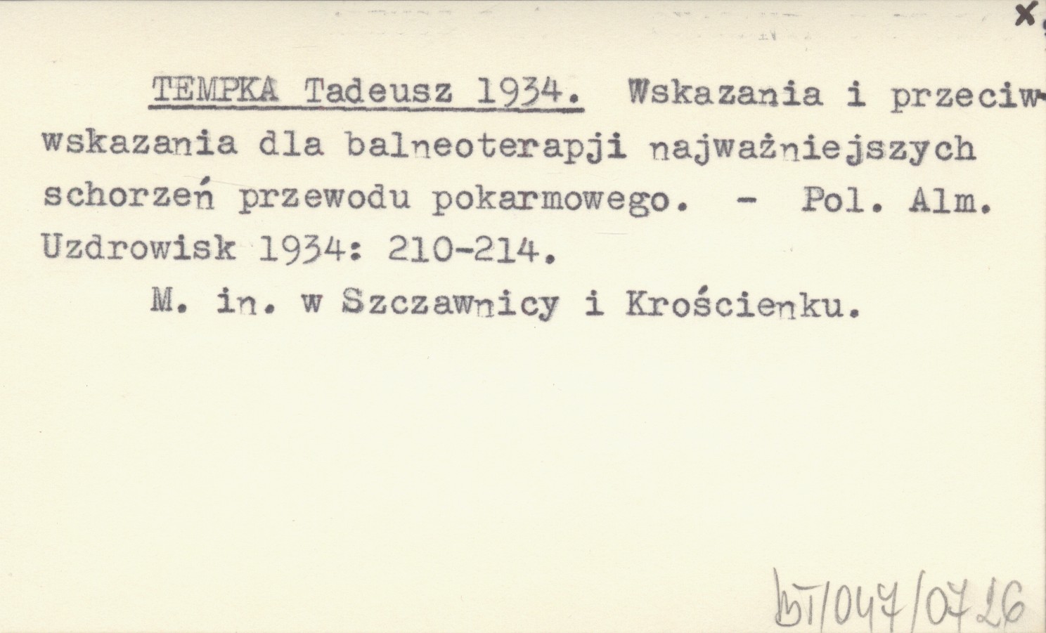 TEMPKA Tadeusz 1934 Wskazania i przeciwwskazania dla balneoterapii najważniejszych schorzeń przewodu pokarmowego.