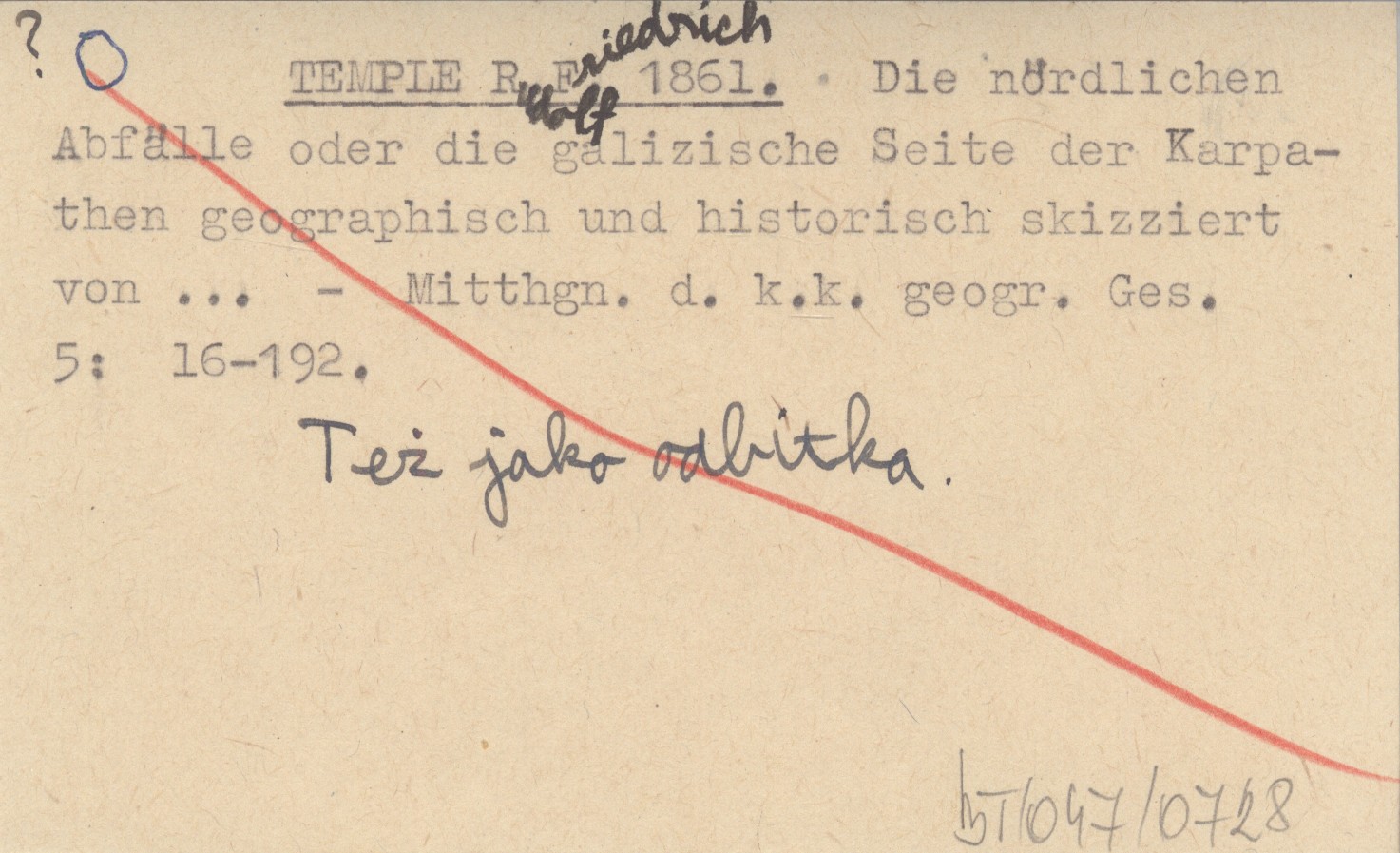 TEMPLE Rudolf Friedrich 1861 Die nördlichen Abfälle oder die galizische Seite der Karpathen geographisch und historisch skizziert von...