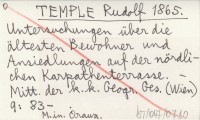 TEMPLE Rudolf 1865 Untersuchungen über die ältesten Bewohner und Ansiedlungen auf der nördlichen Karpathenterrasse.