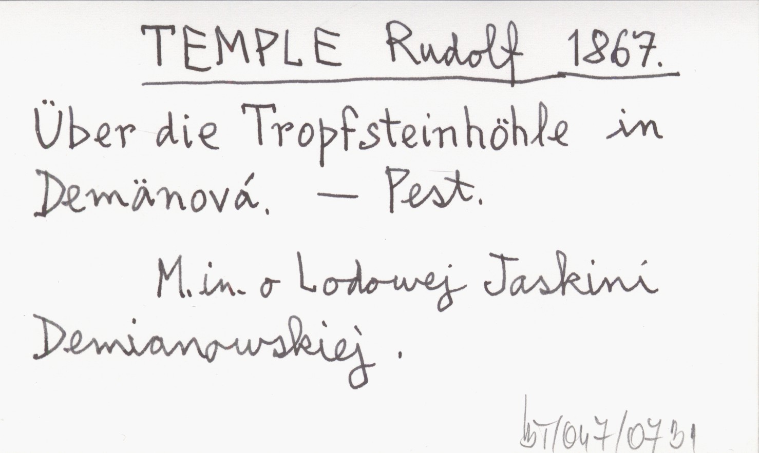 TEMPLE Rudolf 1867 Über die Tropfsteinhöhle in Demänová.