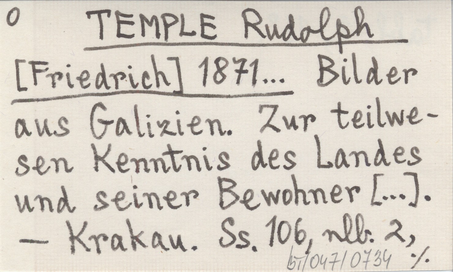 TEMPLE Rudolf [Friedrich] 1871... Bilder aus Galizien. Zur teilwesen Kenntnis des Landes und seiner Bewohner [...].
