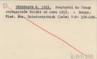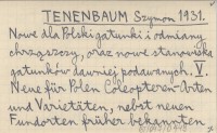 TENENBAUM S. 1923 Przybytki do fauny chrząszczów Polski od roku 1913.