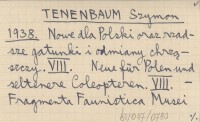 TENENBAUM Szymon 1938 Nowe dla Polski oraz rzadsze gatunki i odmiany chrząszczy. VIII. Neue für Polen und seltenere Coleopteren. VIII.