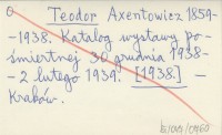 Teodor Axentowicz 1859-1938. Katalog wystawy po¶miertnej 30 grudnia 1938-2 lutego 1939. [1938]