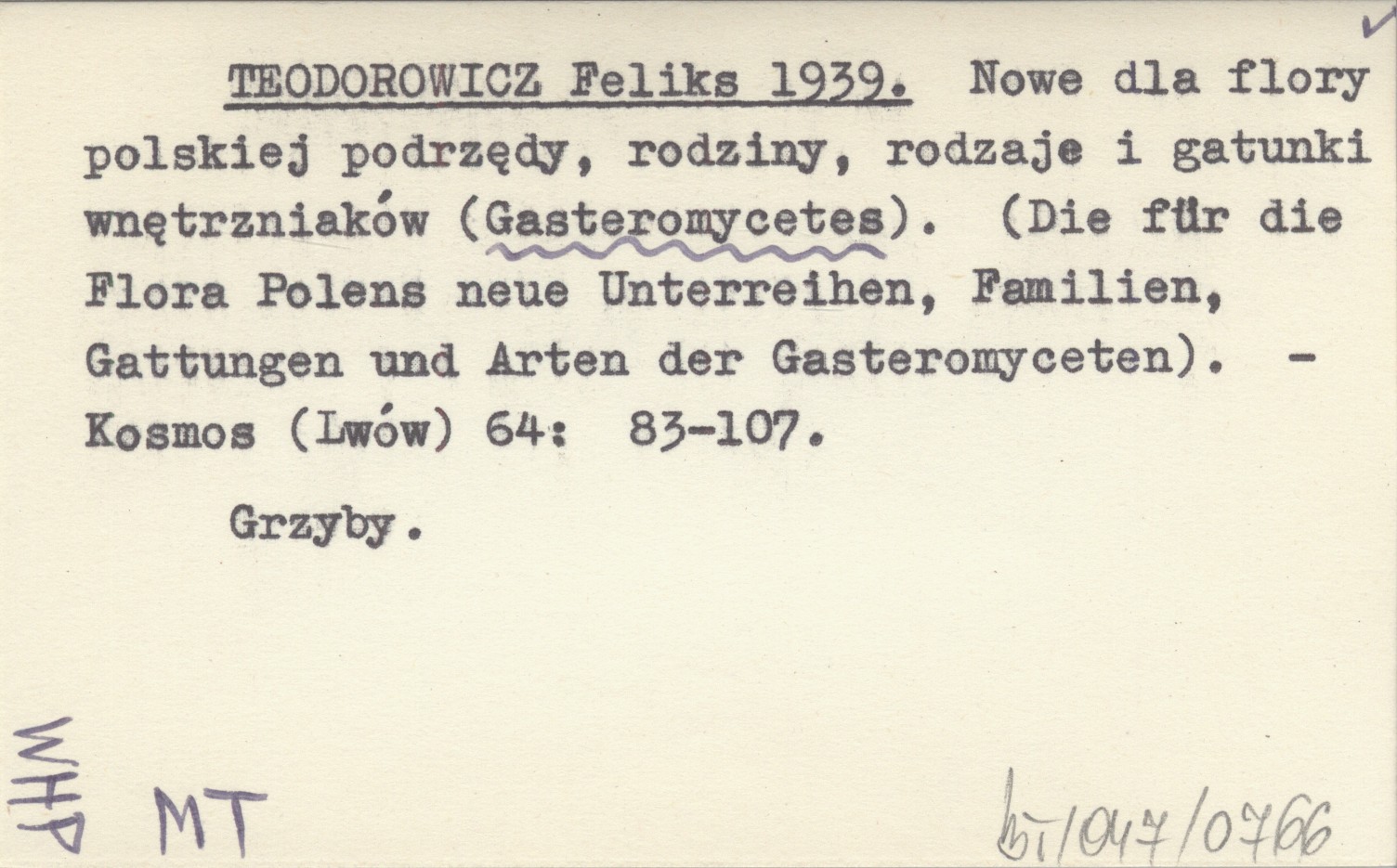 TEODOROWICZ Feliks 1939 Nowe dla flory polskiej podrzędy, rodziny, rodzaje i gatunki wnętrzniaków (Gasteromycetes). (Die für die Flora Polens neue Unterreihen, Familien, Gattungen und Arten der Gasteromyceten).