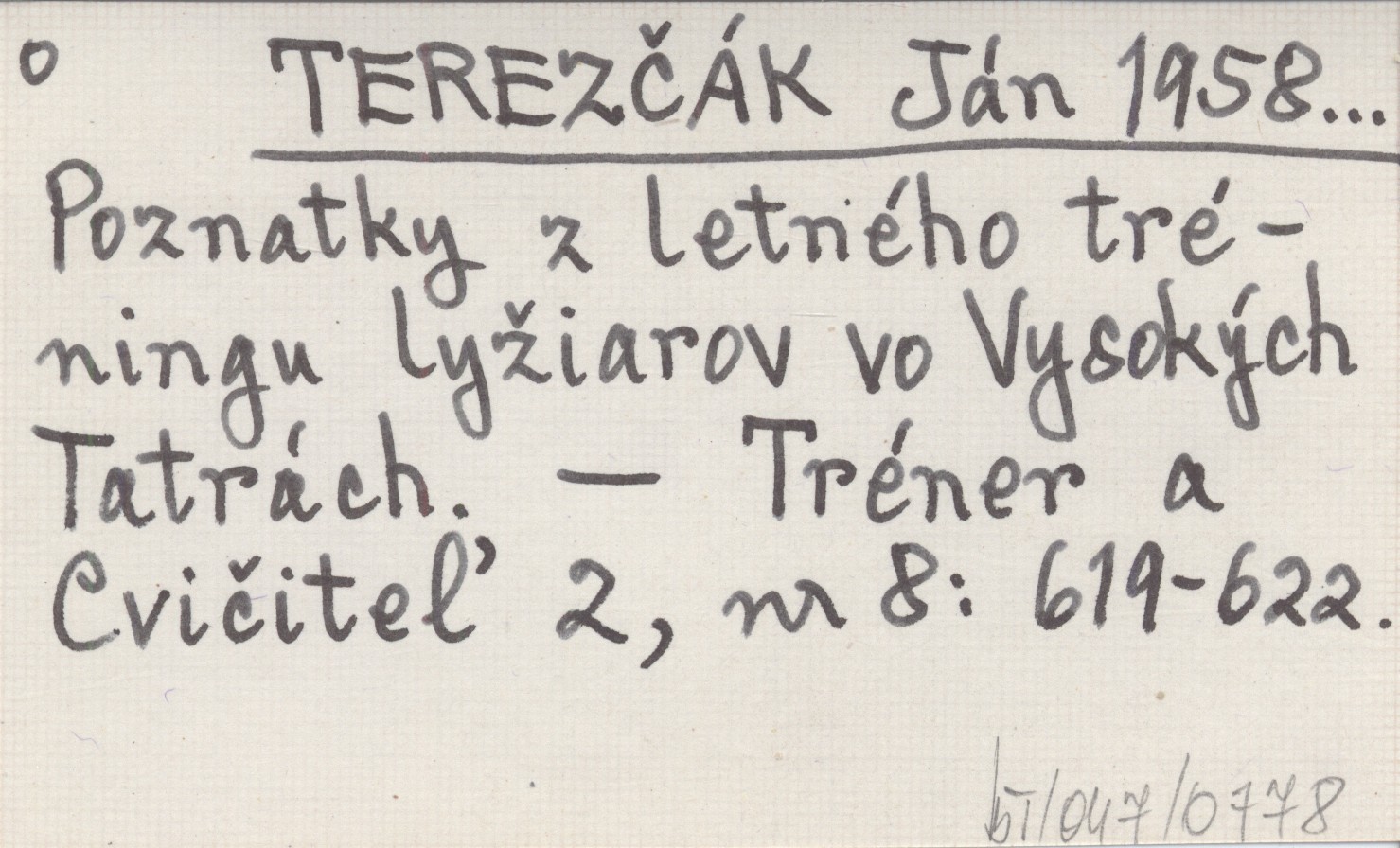 TEREZČÁK Ján 1958... Poznatky z letného tréningu lyľiarov vo Vysokých Tatrách.