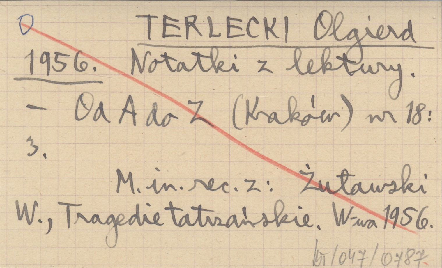 Od A do Z (Kraków) , Nr 18: 3. M. in. recenzja z: ŻUŁAWSKI W., Tragedie tatrzańskie. Warszawa 1956.