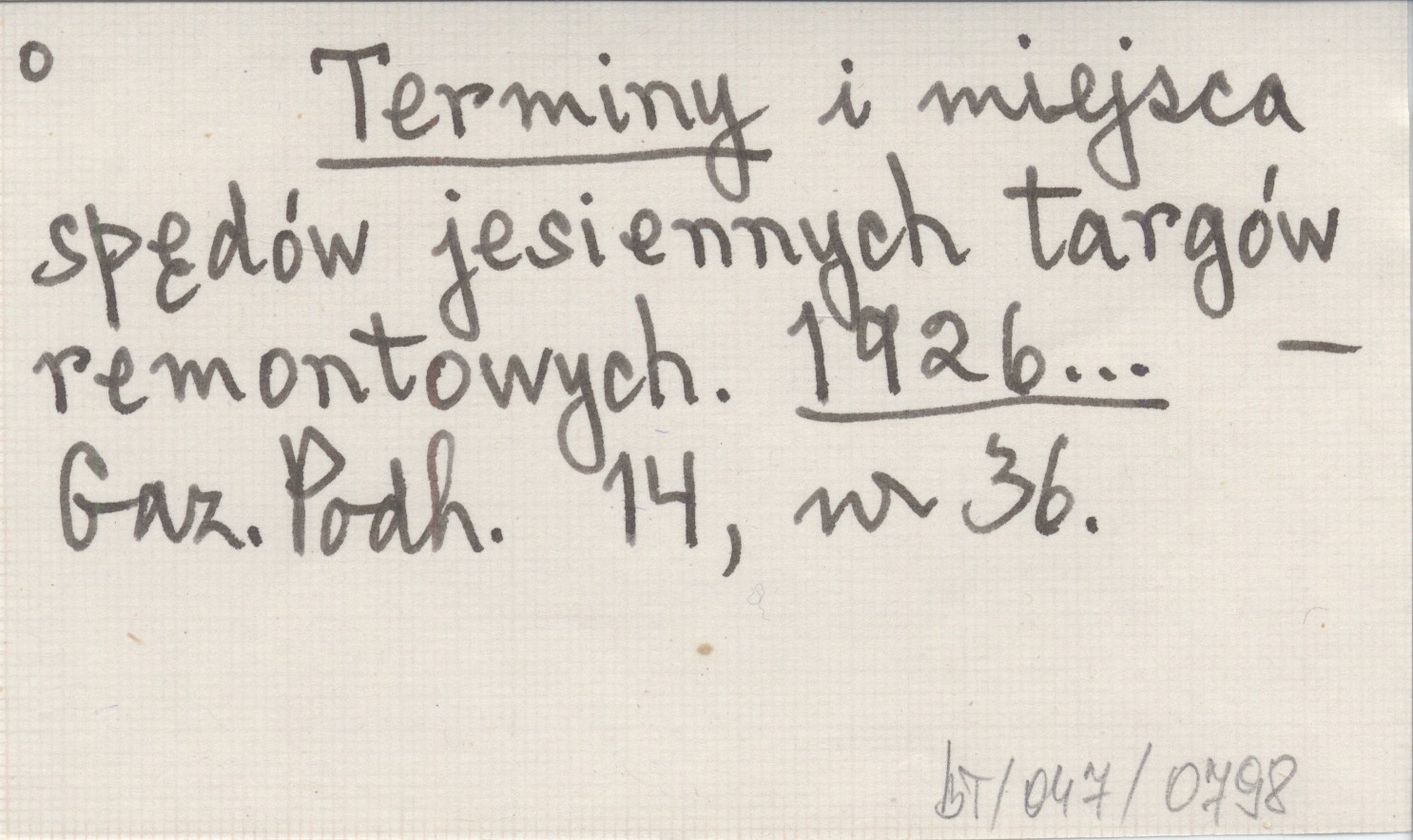 Terminy i miejsca spędów jesiennych targów remontowych. 1926...