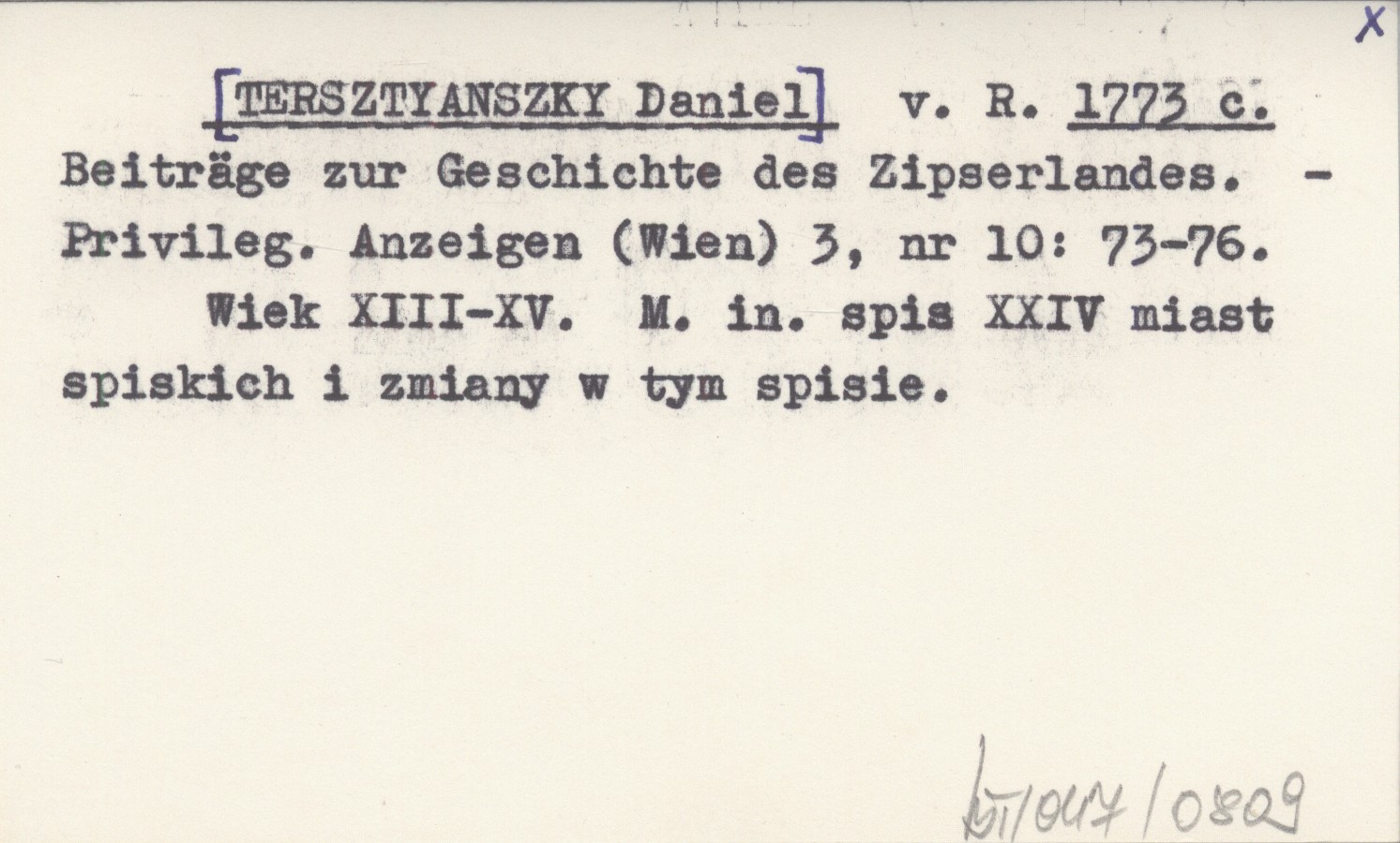 v. R. [TERSZTYANSZKY Daniel] 1773 c Beiträge zur Geschichte des Zipserlandes.