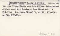 [TERSZTYANSZKY Daniel] 1773 d Nachrichten vom Zipserlande aus dem XVIten Jahrhundert gleich nach der Schlacht bey Mohatsch.