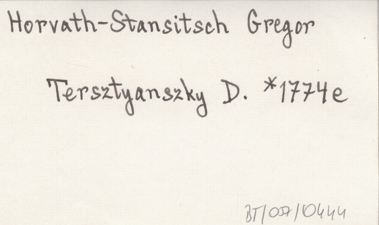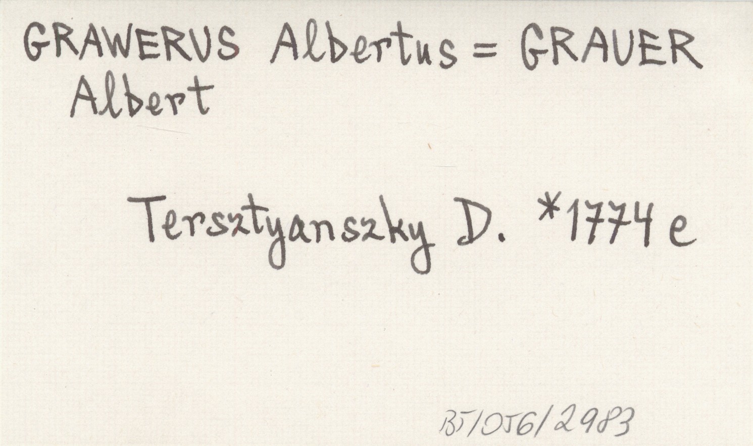 [TERSZTYANSZKY Daniel] 1774 e [Inc.:] Albertus Grawerus [...]. Gregorius Horvath, aliter Stansitsch [...].