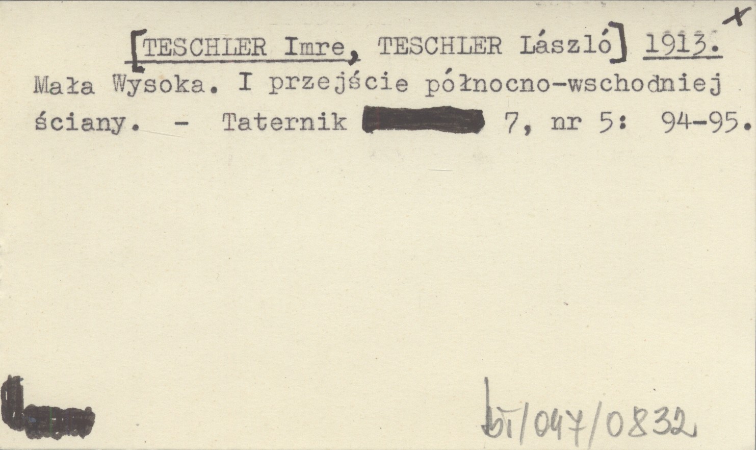 [TESCHLER Imre] TESCHLER, László. ; 1913 Mała Wysoka. I przejście północno-wschodniej ściany.