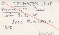 Przerwa TETMAJER Józef 1829 Pieśni.
