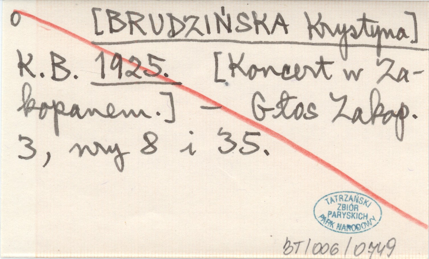 K. B. [BRUDZIŃSKA Krystyna] 1925 [Koncert w Zakopanem.]