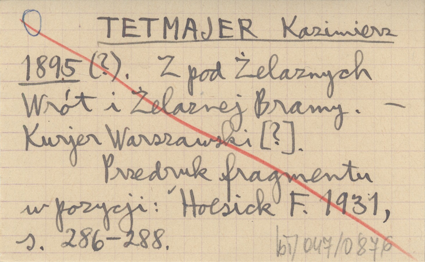 TETMAJER Kazimierz 1895 (?) Z pod Żelaznych Wrót i Żelaznej Bramy.