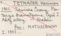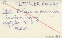 TETMAJER Kazimierz 1901 Ballada z dramatu "Zawisza Czarny".