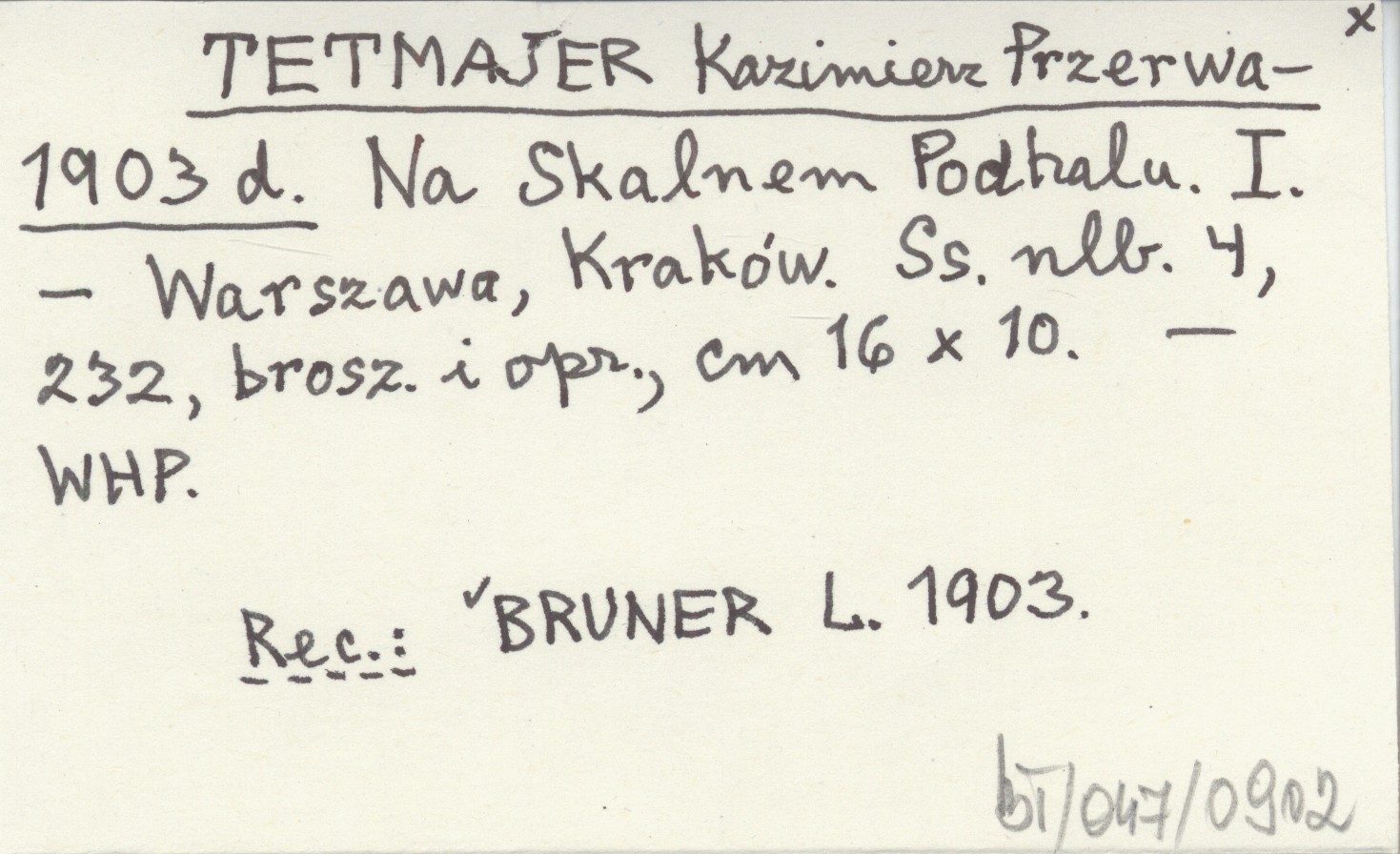 Warszawa ; Kraków ; , [4], 232 s., opr., 16x10 cm, 8°. Broszura. REC: BRUNER L. 1903 ; GALLE Henryk, Książka (Warszawa) 3 (1903), nr 9: 329-330 ; MATUSZEWSKI I. 1903... ;