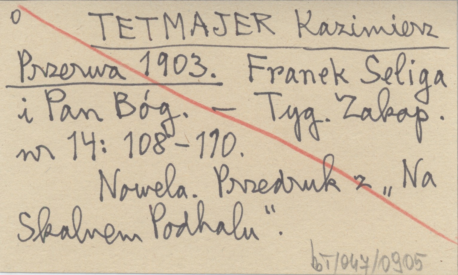 Przerwa TETMAJER Kazimierz 1903 Franek Seliga i Pan Bóg.