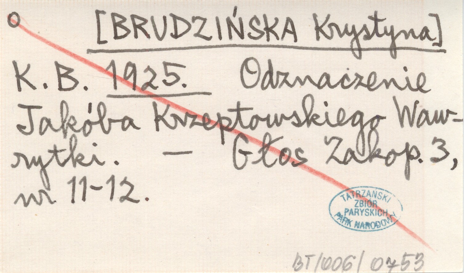 K. B. [BRUDZIŃSKA Krystyna] 1925 Odznaczenie Jakóba Krzeptowskiego Wawrytki.