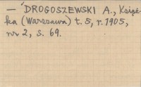 Warszawa , VIII, 240 s., 8°. REC: MAZANOWSKI Antoni, Biblioteka Warszawska (Warszawa) 1904, t. 3 (255): 399-401 ; DROGOSZEWSKI A., Książka (Warszawa) t. 5 (1905), nr 2: 69 ;