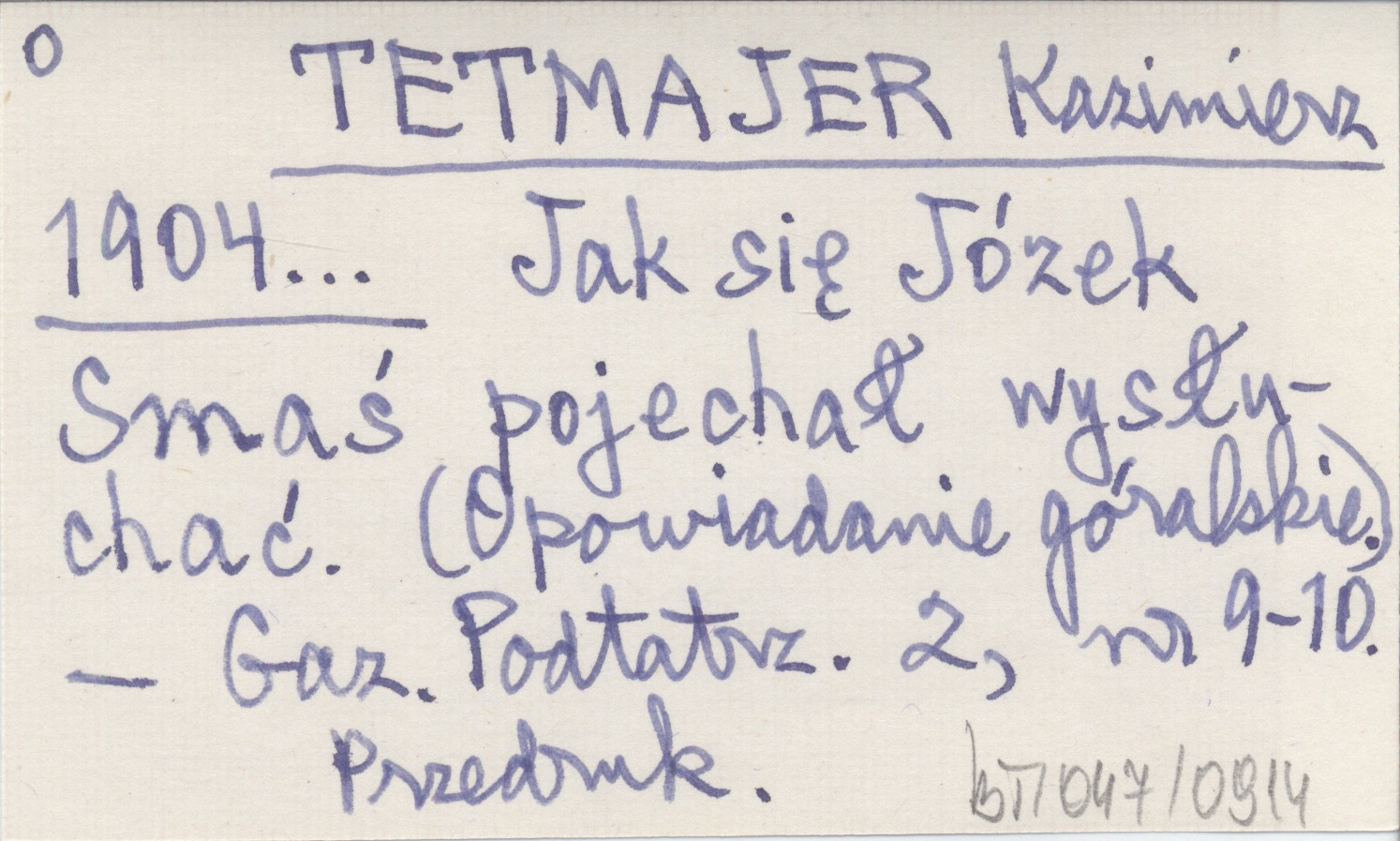 TETMAJER Kazimierz 1904... Jak się Józek Smaś pojechał wysłychać. (Opowiadanie góralskie).