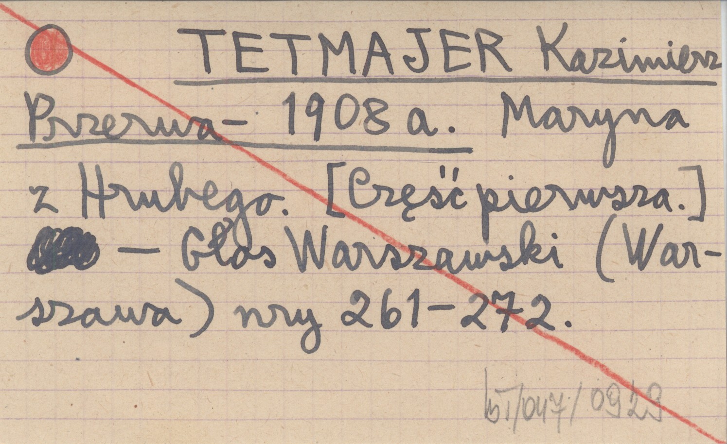 Przerwa- TETMAJER Kazimierz 1908 a Maryna z Hrubego. [Część pierwsza.]