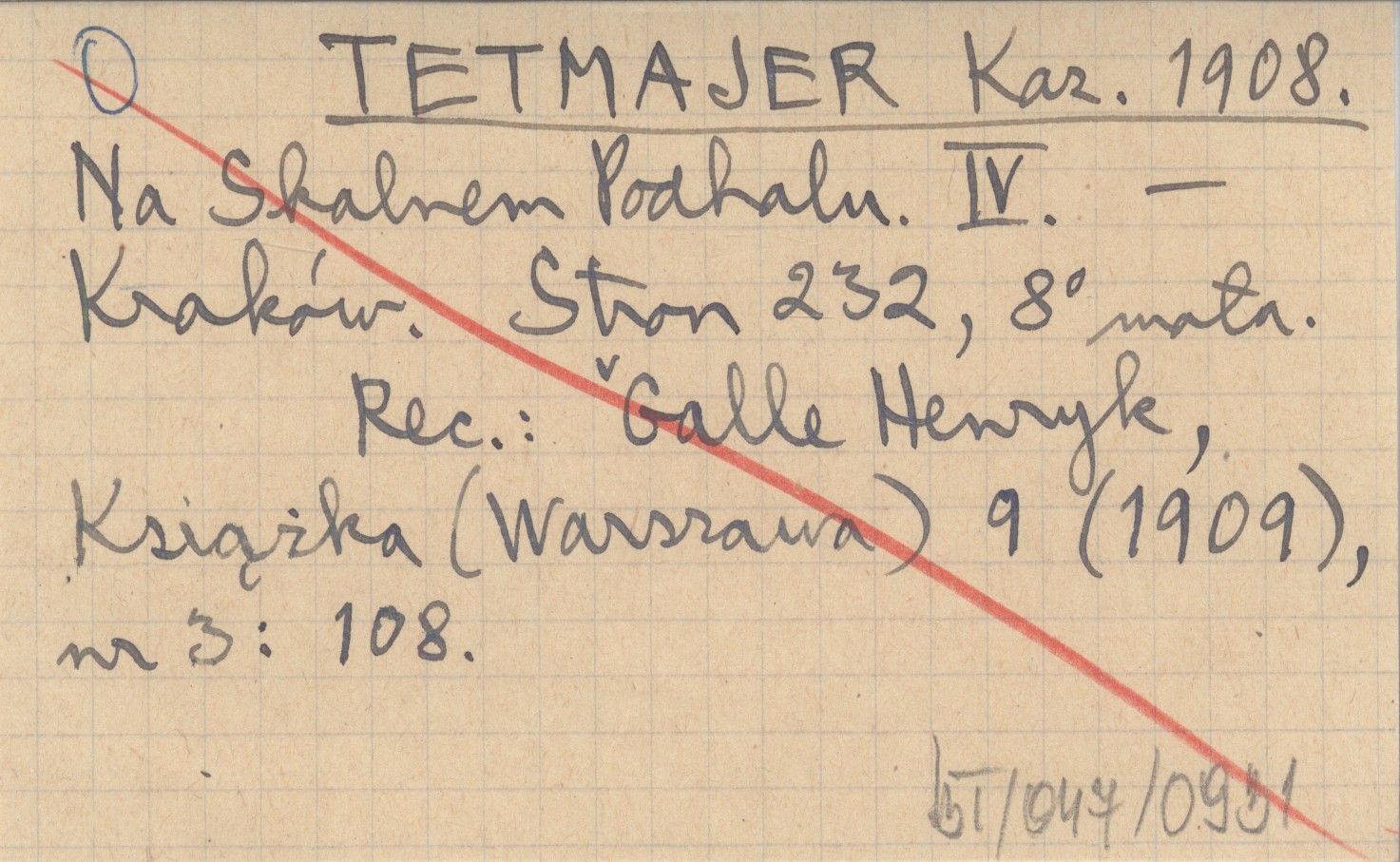 Kraków , 232 s., 8° mała. REC: GALLE Henryk, Książka (Warszawa) 9 (1909), nr 3: 108.