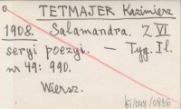 TETMAJER Kazimierz 1908 Salamandra. Z VI seryi poezyi.