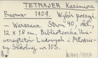 Przerwa- TETMAJER Kazimierz 1909 Wybór poezyi.