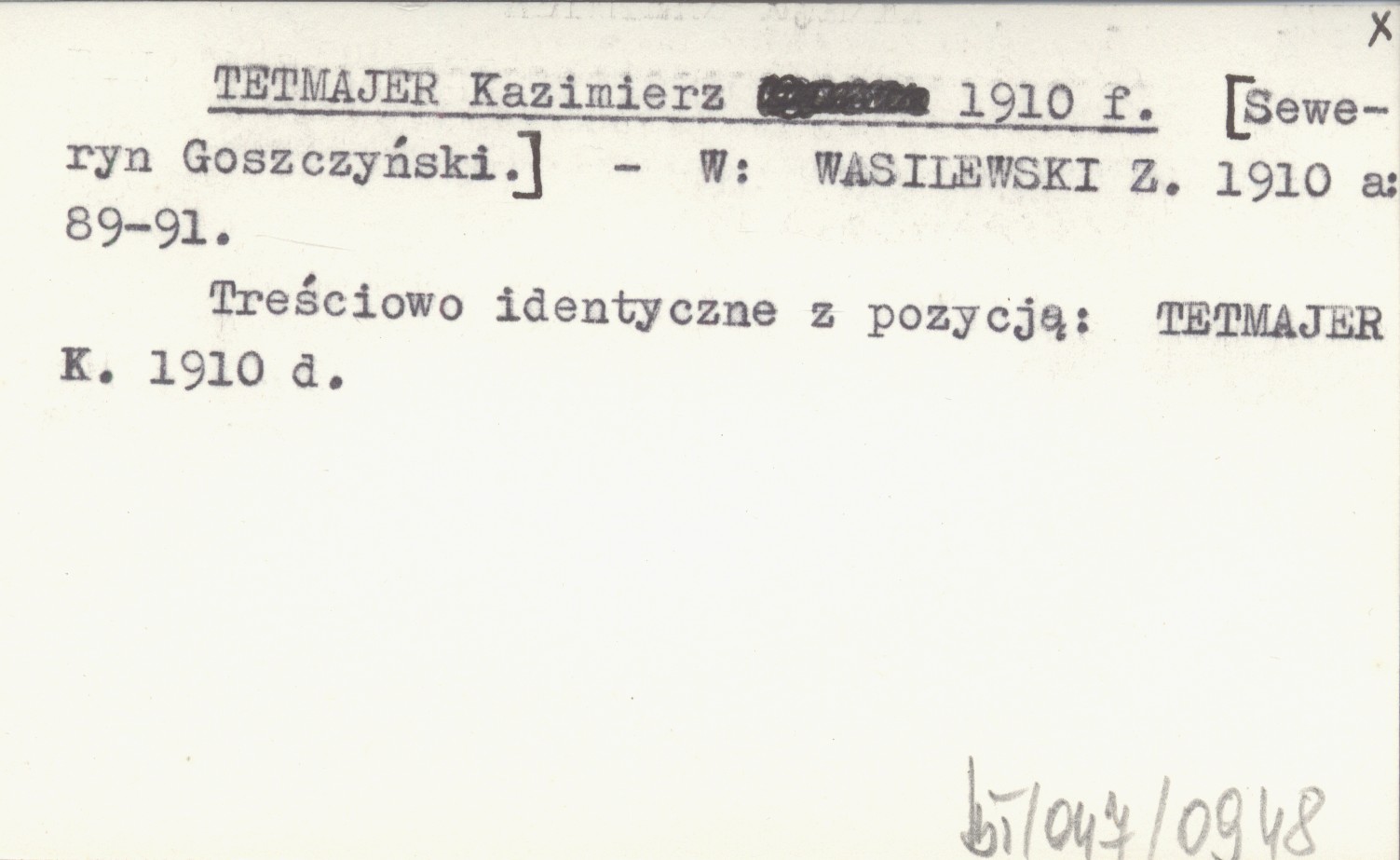 WASILEWSKI Z. 1910 a , S. 89-91. Treściowo identyczne z pozycją: TETMAJER K. 1910 d.