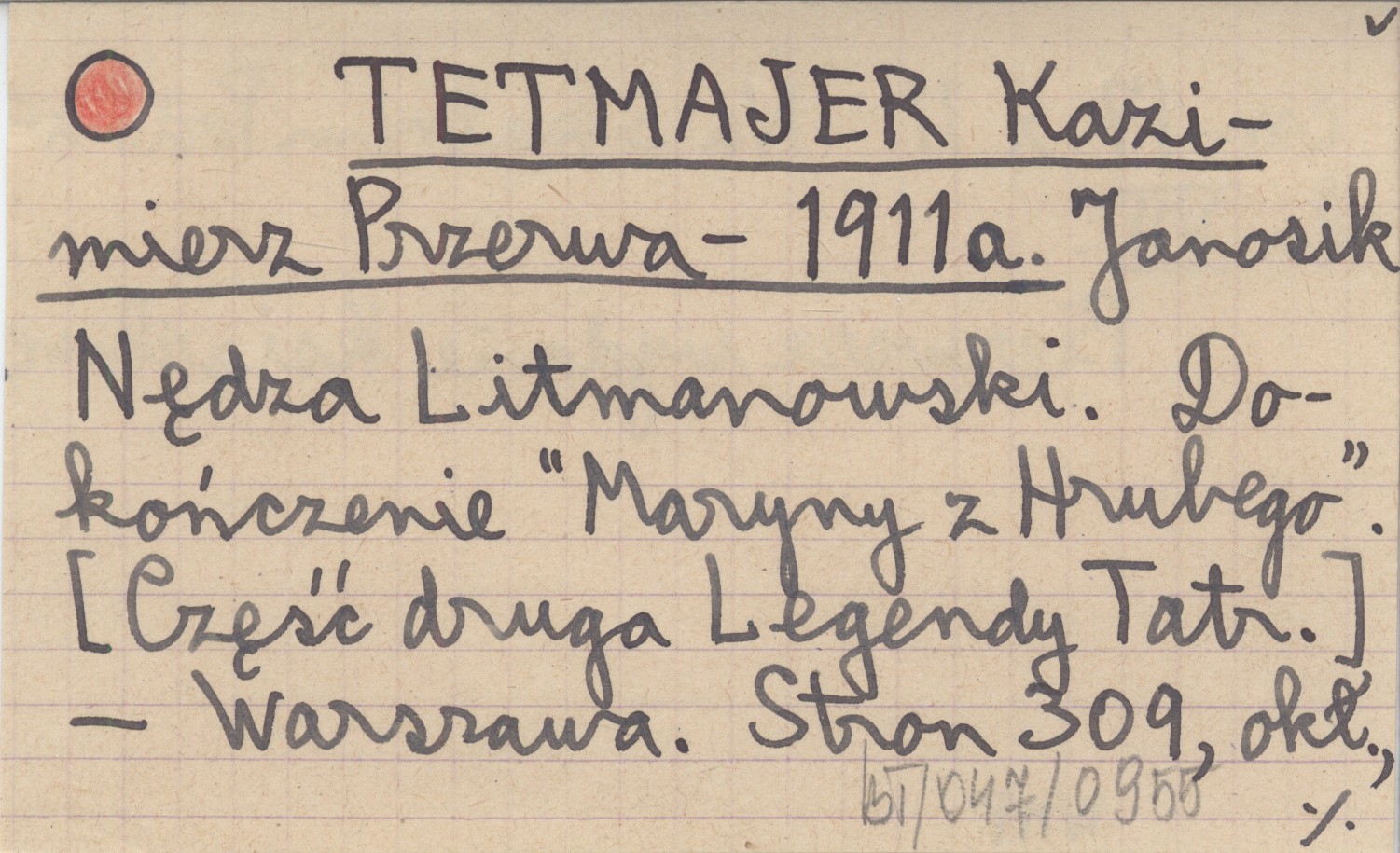 Przerwa- TETMAJER Kazimierz 1911 a Janosik Nędza Litmanowski. Dokończenie "Maryny z Hrubego". [Część druga Legendy Tatr.]