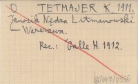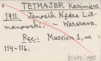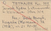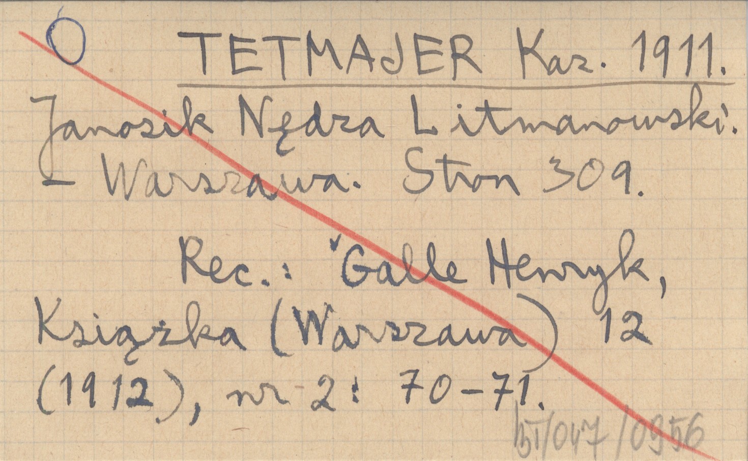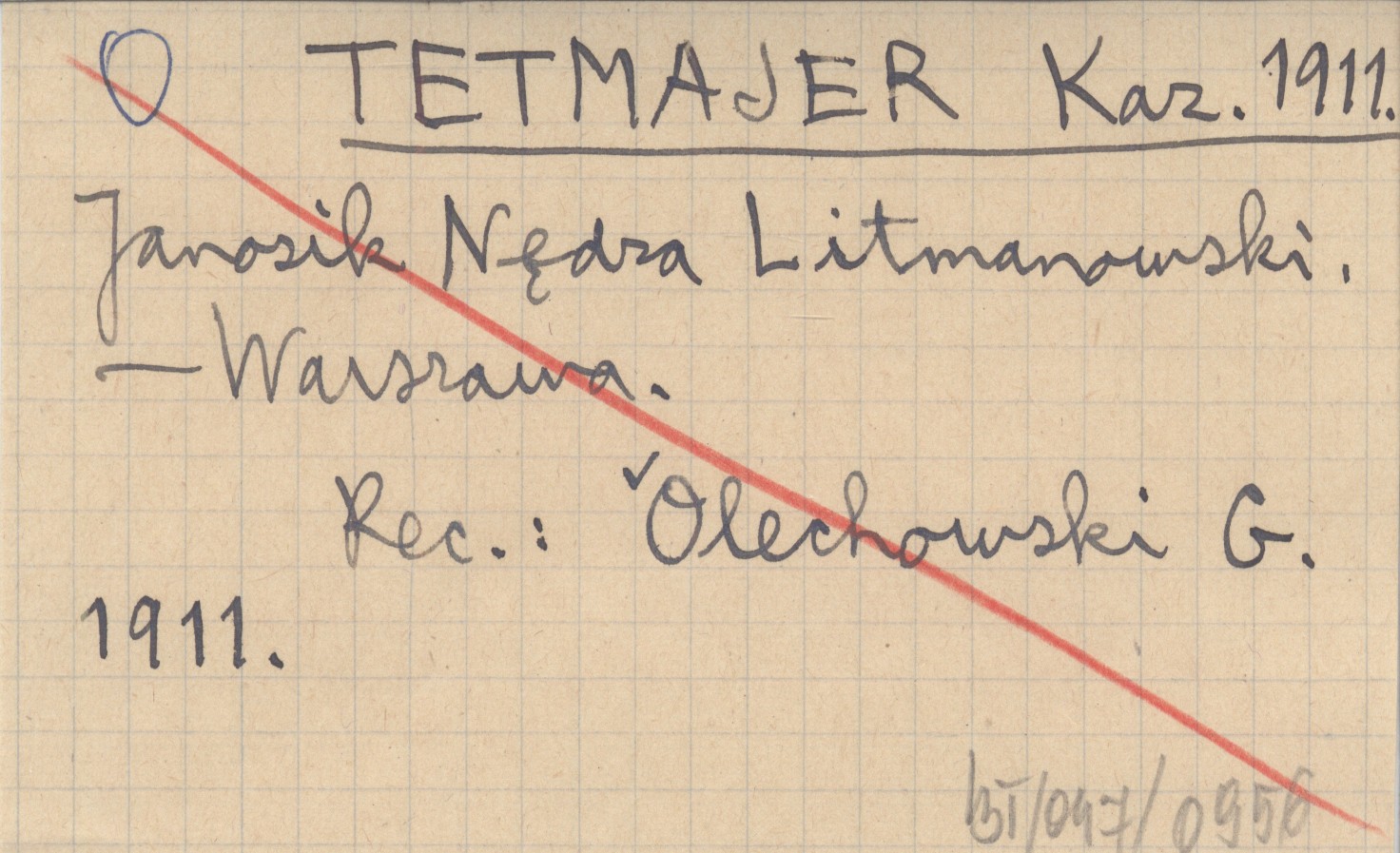 Warszawa , 309 s. REC: OLECHOWSKI G. 1911 ; GALLE Henryk, Książka (Warszawa) 12 (1912), nr 2: 70-71 ; Museion 1: 114-116 ;