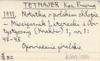 TETMAJER Kazimierz 1911 Notatka o polskim chłopie.