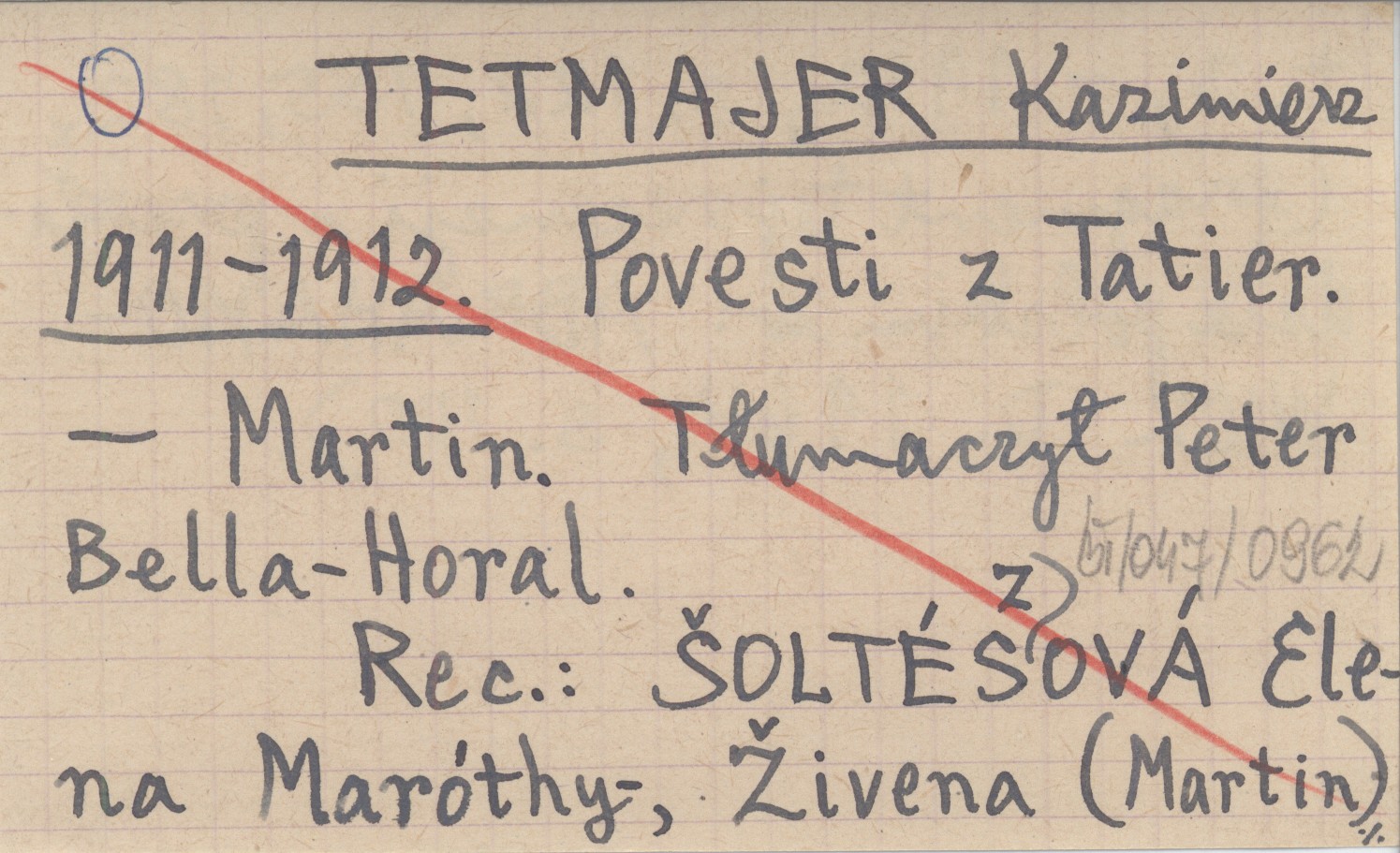 Martin , Tłumaczył Peter Bella-Horal. REC: ŠOLTÉSZOVÁ Elena Maróthy-, Živena (Martin) t. 3 (1912): 122, 155, 182 (fragment tej recenzji w przekładzie polskim w: ABRAHAMOWICZ D. 1964: 100).