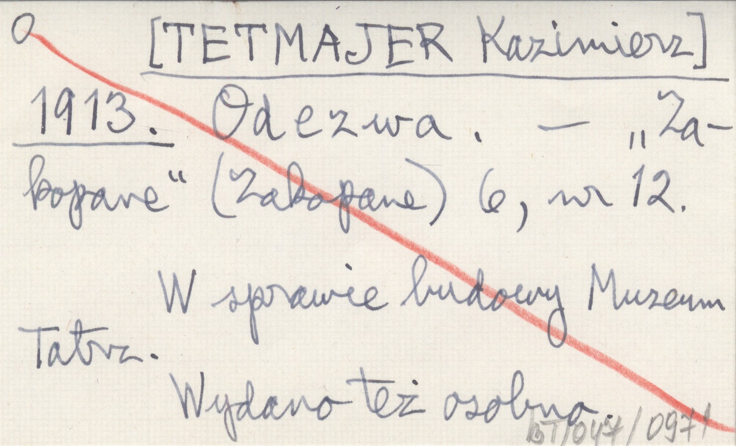 Zakopane (Zakopane) , 6, nr 12. W sprawie budowy Muzeum Tatrzańskiego. Wydano też osobno.