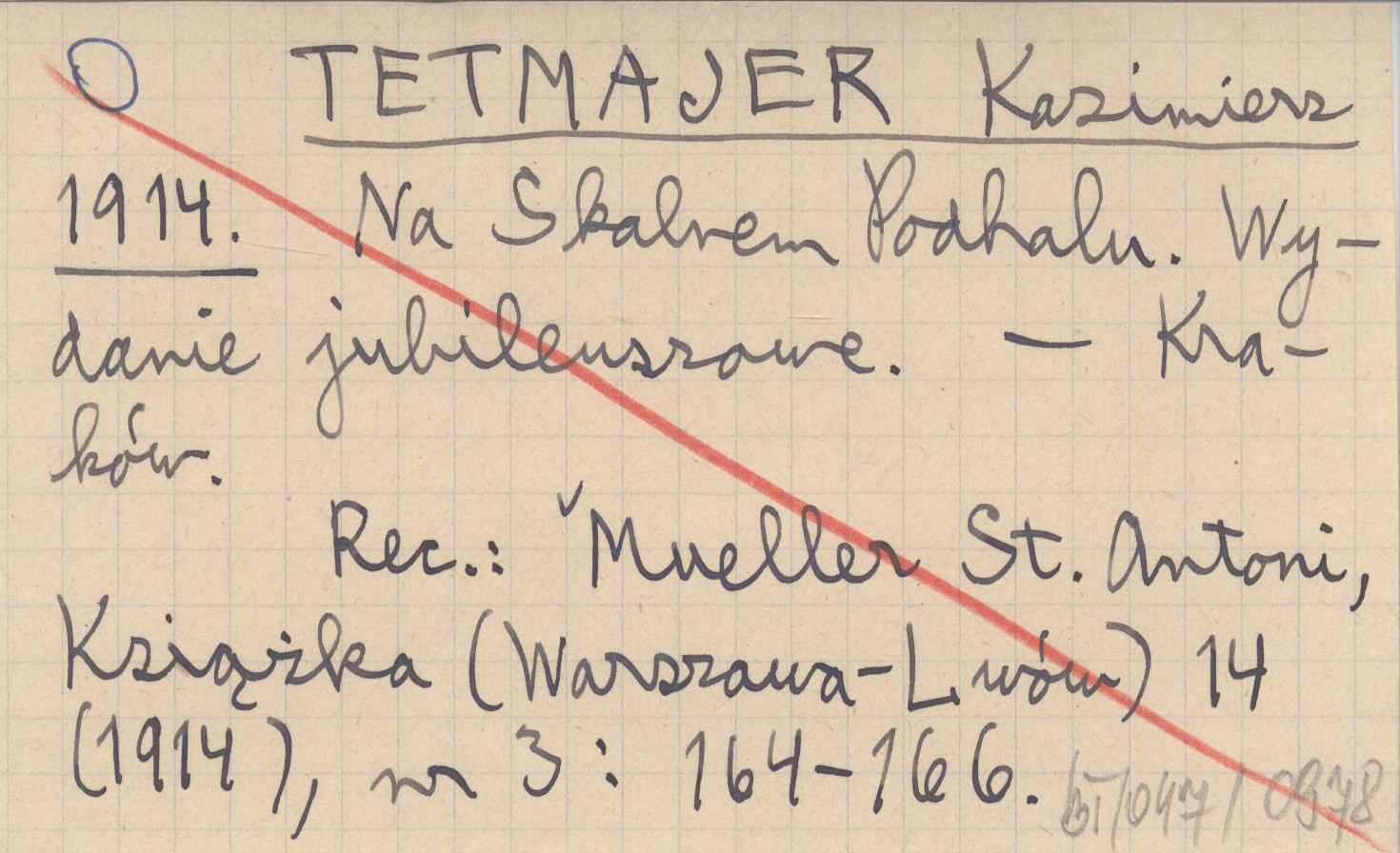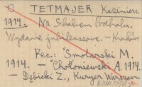 Kraków , REC: MUELLER St. Antoni, Książka (Warszawa, Lwów) 14 (1914), nr 3: 164-166 ; SMOLARSKI M. 1914 ; CHOŁONIEWSKI A. 1914 ; DĘBICKI Z., Kuryer Warszawski (Warszawa) 1914 ;