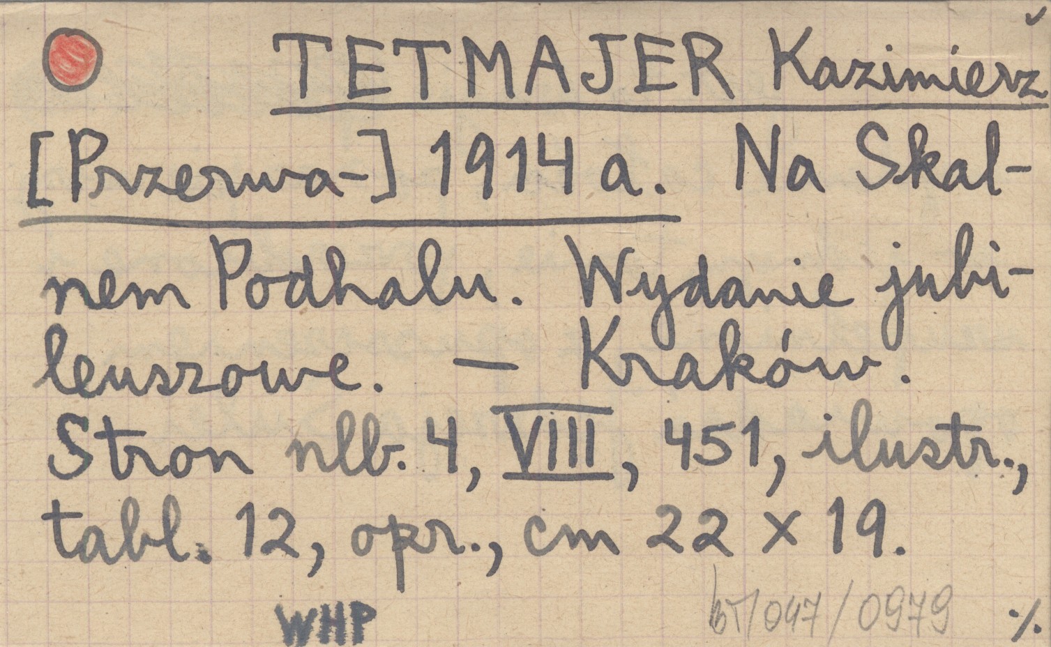 [Przerwa-] TETMAJER Kazimierz 1914 a Na Skalnem Podhalu.