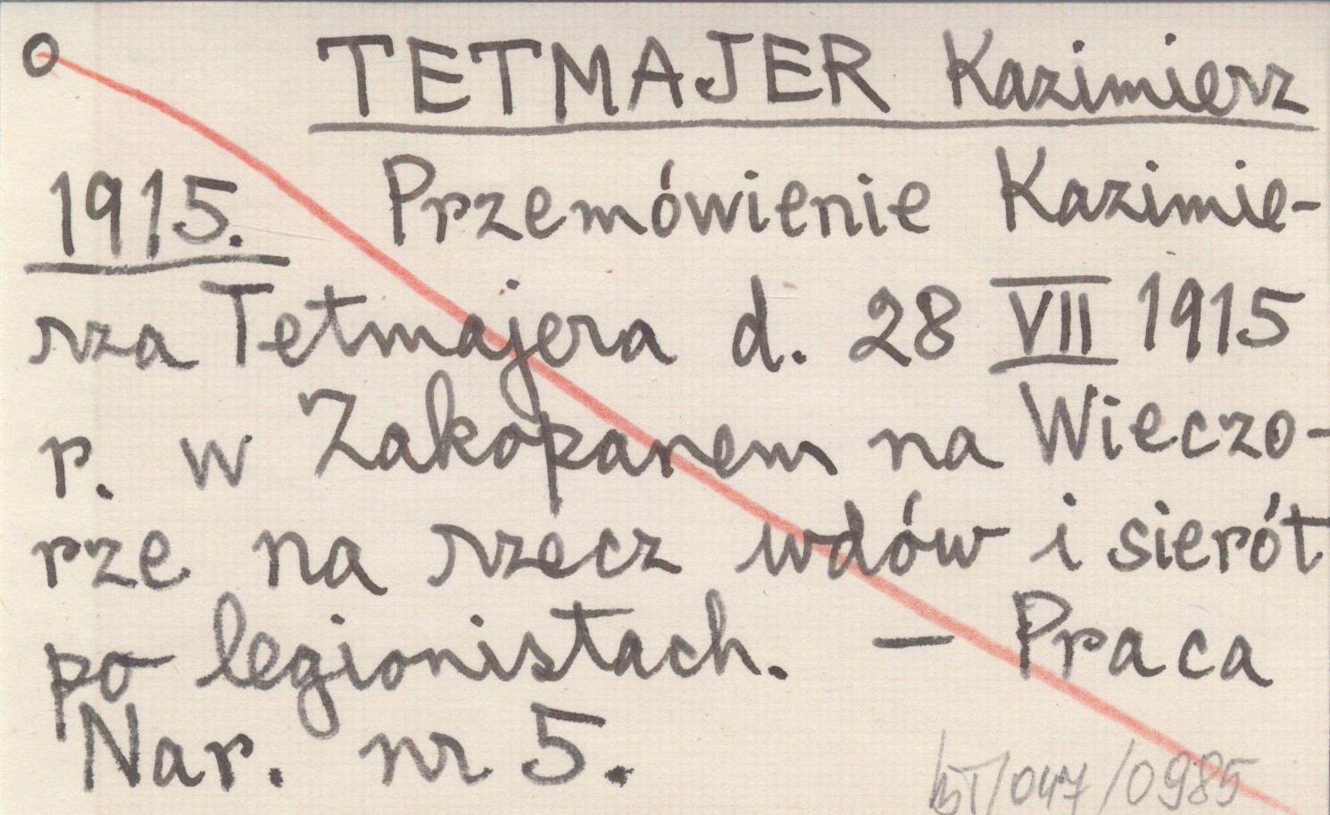 TETMAJER Kazimierz 1915 Przemówienie Kazimierza Tetmajera d. 28 VII 1915 r. w Zakopanem na Wieczorze na rzecz wdów i sierót po legionistach.